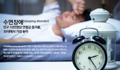 수면장애(sleeping disorder)란 건강한 수면을 취하지 못하거나 충분한 수면을 취하고 있음에도 낮 동안에 정신을 차리지 못하는 상태, 또는 수면리듬이 흐트러져 있어서 잠자거나 깨어 있을 때 어려움을 겪는 상태를 말하는 것으로 수면장애 종류로는 ‘불면증’, ‘기면증’, ‘하지불안증후군’, ‘코골…